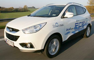 Hyundai greift mit Brenstoffzelle an: Die Koreaner machen Ernst mit alternativen Antrieben und wollen ab 2012 rund 1.000 Exemplare ihres ix35 FCEV mit Brennstoffzelle bauen. 2015 soll das Wasserstoff-Auto mit 10.000 Stück in Serie gehen und 2020 will Hyundai satte 100.000 Brennstoffzellen-Autos bauen, so die kühne Planung.