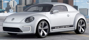 VW enthüllt E-Bugster Concept in Detroit: Wie bereits vermutet, stellt Volkswagen zum Auftakt der Auto Show in Detroit einen elektrischen Beetle vor. Die Studie namens E-Bugster kommt als sportlicher Zweisitzer mit Schnelllader, 114 PS E-Motor und bis zu 160 km Reichweite daher. Im Cockpit stellt ein Bildschirm die Infos zum Ladezustand dar. Nettes Detail: Der Ladeanschluss ist unterm VW-Emblem versteckt.