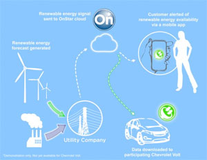 GM will Erneuerbare in den Akku pumpen: General Motors arbeitet an einem spannenden Tool für seine Kommunikationsplattform OnStar. Das Feature soll Besitzern eines Chevy Volt oder der heimischen Ladestation melden, wenn besonders viel Ökostrom im Netz zur Verfügung steht. Ladestation oder Besitzer sollen dann spontan den Ladevorgang starten können.