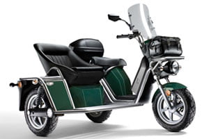 Neues E-Dreirad von MATRA: Die Firma aus Frankreich hat ihrem E-Roller e-MO XP einen Beiwagen verpasst und schlägt damit zwei Fliegen mit einer Klappe. Einerseits entsteht Platz für einen Mitfahrer, anderseits gibt es nun auch eine größere Batterie, wodurch die Reichweite von 30 auf 120 Kilometer steigt. Käuflich zu erwerben ist der/die/das neue Matra e-Mo XP für vertretbare 2.790 Euro.