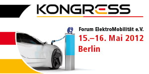 Forum ElektroMobilität – KONGRESS: Vom 15. bis 16. Mai 2012 treffen sich im Berliner SpreePalais die wichtigsten Entscheider & Experten im Zielfeld Elektromobilität. Die exklusive Fachveranstaltung dokumentiert mit über 30 hochkarätigen Referenten und über 20 Ausstellern den aktuellen Stand der Technologien. Kommen Sie dazu – Programm & Anmeldung unter: www.forum-elektromobilitaet.de