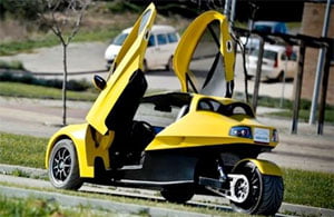 E-Flitzer Veeco RT1 aus Portugal: Das Land im Südwesten Europas hat jetzt seinen eigenen Elektro-Sportwagen. Der Veeco RT1, ein Gemeinschaftsprojekt verschiedener Firmen, kommt als Kabinenroller daher und soll 2013 tatsächlich auf den Markt kommen. Ein 16 kWh großer Lithium-Eisenphosphat-Akku liefert genügend Saft für 400 Kilometer Reichweite.