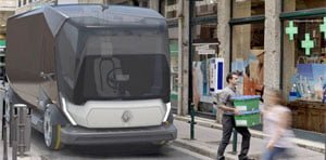 Idee für Elektro-Lkw von Renault Trucks: Die Lkw-Schmiede, die seit 2011 zu Volvo gehört, hat ihre Vision eines elektrischen Transporters für den städtischen Verteilerverkehr zunächst in ein Modell im Maßstab 1:25 gegossen. Die Besonderheiten: Im Connect sind die Akkus im Fahrzeugrahmen verbaut, die Motoren arbeiten in den Radnaben und der Fahrer sitzt mittig.
