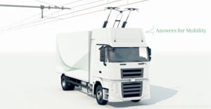 Siemens präsentiert eHighway: Den Schwerlastverkehr der Zukunft stellt sich Siemens elektrisch vor. Ein entsprechendes Konzept hat der Konzern gestern auf der EVS26 in Los Angeles vorgestellt. Beim sogenannten eHighway werden Hybrid-Lastwagen über Oberleitungen mit Strom versorgt, sobald sie auf die Autobahn kommen. Den Kontakt stellt dann ein an- und abbügelbarer Stromabnehmer her.