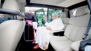 Päpstliches Elektromobil: Mit der Übergabe eines Renault Kangoo Maxi Z.E. ist nun auch Benedikt XVI. in der neuen Welt angekommen. Gemeinsam mit dem französischen Karosserie-Spezialisten Gruau hat Renault den Papst-Stromer recht ordentlich ausgestattet: Ein weit öffnendes Schiebedach, ausfahrende Trittstufen und maßgeschneiderte Einzelsitze bieten erstaunlichen Komfort. Den zweiten Elektro-Kangoo wird künftig die Gendarmerie des Vatikans nutzen.