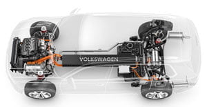 VW präsentiert Hybrid-SUV in Detroit: Die fünf Meter lange Studie CrossBlue wurde speziell für den US-Markt kreiert und gliedert sich irgendwo zwischen Tiguan und Tuareg ein. Die Zutaten: Allrad, Dieselhybridantrieb, 306 PS Systemleistung und sechs Sitze. Der Plug-in-Hybrid mit seinem 85 kW starken E-Motor soll 33 km rein elektrisch zurücklegen. Ob es zur Serienfertigung kommt, muss sich noch zeigen.