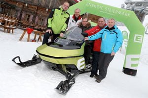 Erstes Elektro-Schneemobil auf der Piste: Der steirische Stromversorger Energie Steiermark (Estag) hat am Rande der Ski-WM in Schladming ein vollelektrisches Schneemobil vorgestellt. Das Snowbird fährt bis zu 120 km/h schnell und wird gerade von der Bergwacht getestet. Entwickelt wurde der Schneevogel von Estag, der Fachhochschule Joanneum, dem Wirtschaftsressort des Landes Steiermark und den Planai-Bahnen. Auch die USA und Kanada haben Interesse angemeldet.