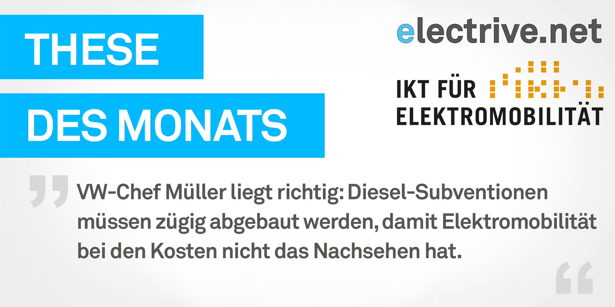 „VW-Chef Müller liegt richtig: Diesel-Subventionen müssen zügig abgebaut werden, damit Elektromobilität bei den Kosten nicht das Nachsehen hat.“