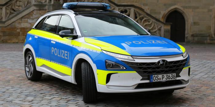 Update 21.04.2020: Inzwischen ist auch der erste Hyundai Nexo im Polizei-Einsatz. Die Polizeidirektion Osnabrück testet den Nexo als Wasserstoff-Streifenwagen für ein Jahr auf seine Alltagstauglichkeit hin. Eine ursprünglich vorgesehene offizielle Vorstellung des Fahrzeuges gemeinsam mit Innenminister Boris Pistorius und Polizeipräsident Michael Maßmann musste wegen der Corona-Problematik abgesagt werden, wie die Polizei in der Mitteilung schreibt. Das Projekt der Polizeidirektion Osnabrück wird im Rahmen des Nationalen Innovationsprogramms Wasserstoff- und Brennstoffzellentechnologie mit insgesamt 20.460 Euro durch das Bundesministerium für Verkehr und digitale Infrastruktur gefördert.