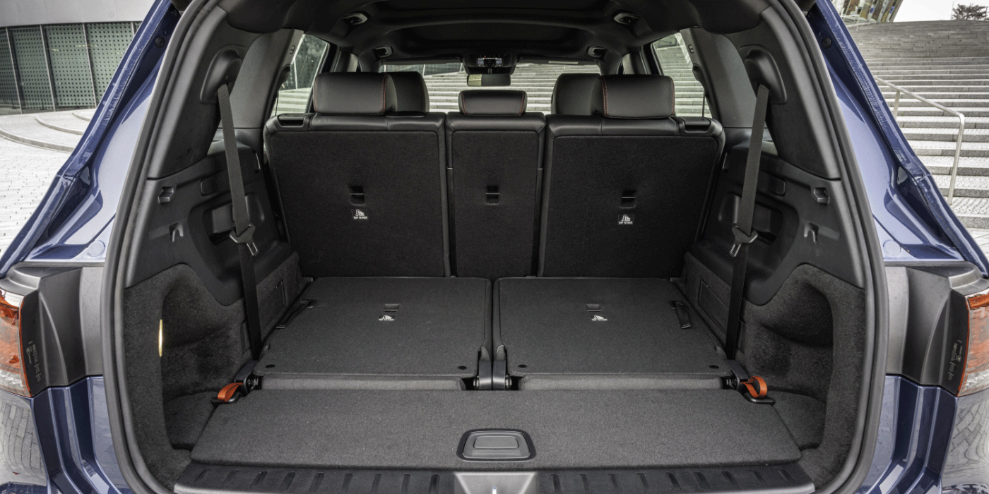Hierbei werden in der dritten Reihe zwei getrennte Rücklehnen hochgeklappt. Dann haben Menschen bis 1,65 m Körpergröße Platz. Alternativ montiert man zwei Kindersitze per Isofix. Doch Kinderwagen und Wickeltasche passen dann nicht mehr in den Kofferraum. Bei umgeklappter dritter Sitzreihe stehen 465 Liter und mit umgeklappter zweiter Sitzreihe 1.620 Liter Stauraum zur Verfügung. Die Rückenlehnen der zweiten Sitzreihe lassen sich in Stufen nach hinten verstellen. Die Sitzfläche kann man um 14 cm verschieben, was den Passagieren in der dritten Reihe mehr Beinfreiheit verschafft. Bei 1,67 m Fahrzeughöhe bleibt zumindest in der zweiten Reihe ausreichend Kopffreiheit.