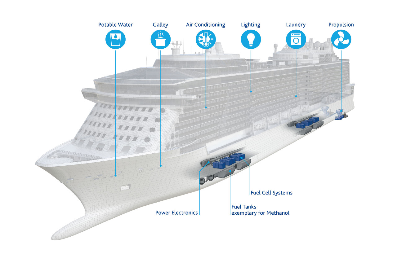 Durch das Siegel sind die Sicherheit des Systems und dessen Konformität zu maritimen Standards und Regularien bestätigt und die Grundlagen erarbeitet, um Brennstoffzellensysteme auch im Megawatt-Maßstab auf Kreuzfahrtschiffen und der internationalen Hochseeflotte einzusetzen. Bei dem Methanol-Brennstoffzellensystem von Freudenberg wird Wasserstoff per Dampfreformierung direkt in der modularen, skalierbaren Systemeinheit erzeugt. In der PEM-Brennstoffzelle reagiert der Wasserstoff mit Sauerstoff aus der Luft. Die so generierte elektrische Energie speist sowohl den Antrieb als auch das Bordnetz.